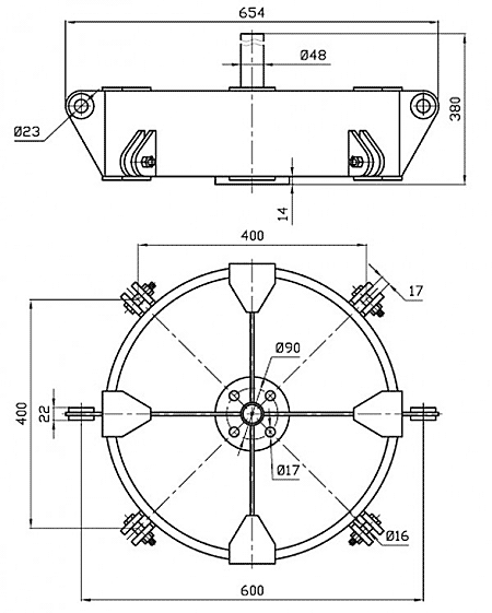Коротке чотирицепне двореберне марки 4КД2-25-1 з двома точками кріплення